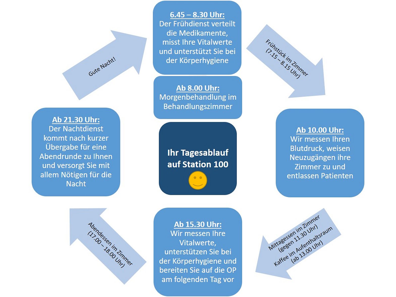 als Pflegeteam der Station möchten wir Sie herzlich begrüßen! Um Ihnen den Aufenthalt bei uns zu erleichtern, finden Sie hier einige wichtige Informationen. Bitte melden Sie sich beim Pflegestützpunkt ab, bevor Sie die Station verlassen und wieder an, wenn Sie zurückkommen!