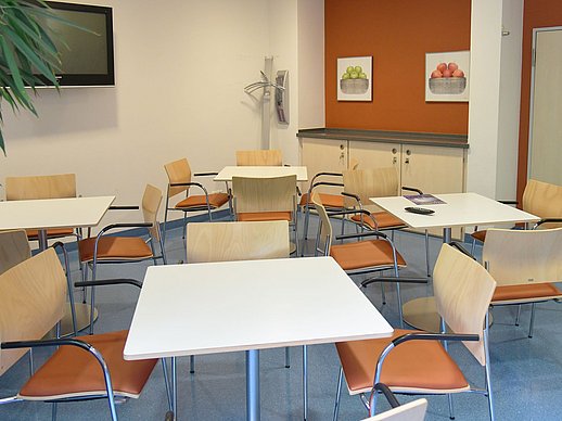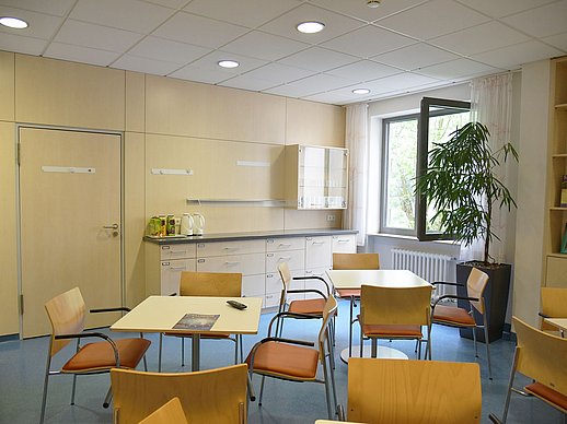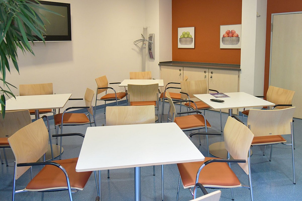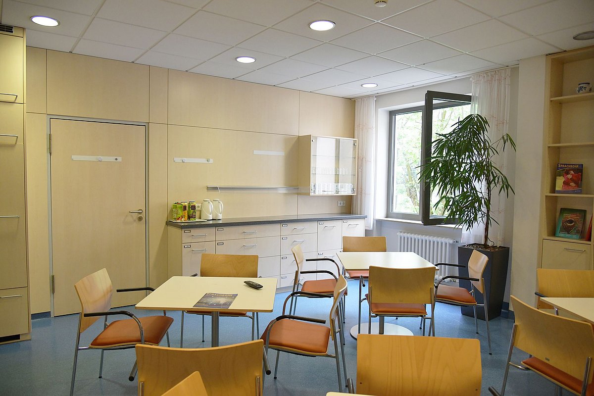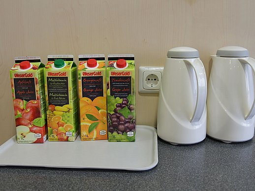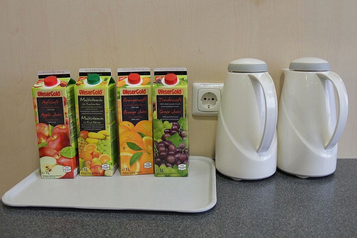... Tee, Mineralwasser, Saft, frische Gläser und Tassen stehen für Sie im Aufenthaltsraum bereit.