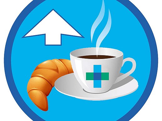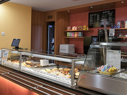 ... für Sie und Ihre Besucherbefindet sich im UG gegenüber der Pforte. Dort erhalten Sie kleine Snacks, Kuchen und Getränke. Im EG weisen Ihnen hellblaue Bodenpunkte mit einer Kaffeetasse den Weg ins HNO-Café.