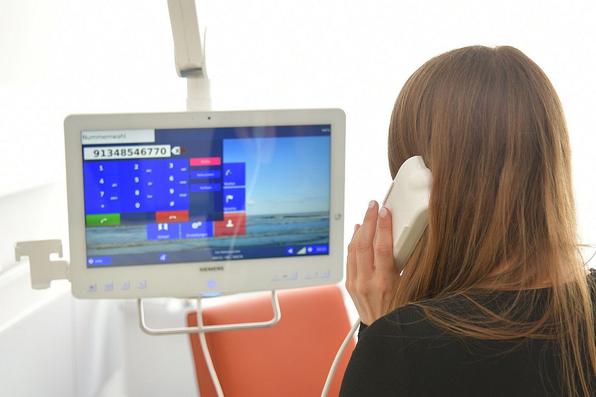 ... ist nur außerhalb der Patientenzimmer möglich, etwa im Innenhof oder vor dem Haupteingang der HNO-Klinik.