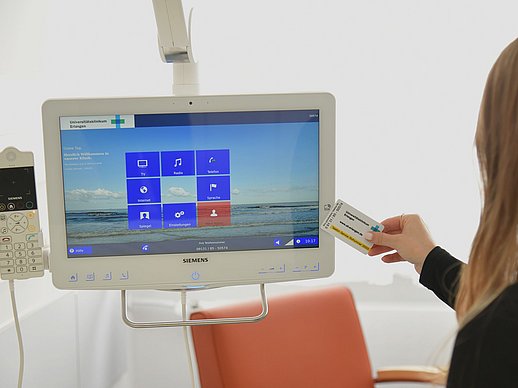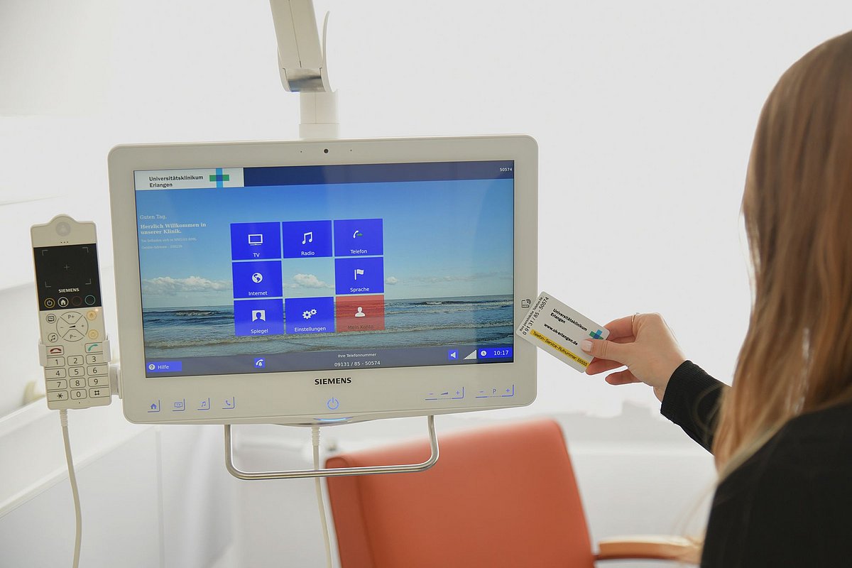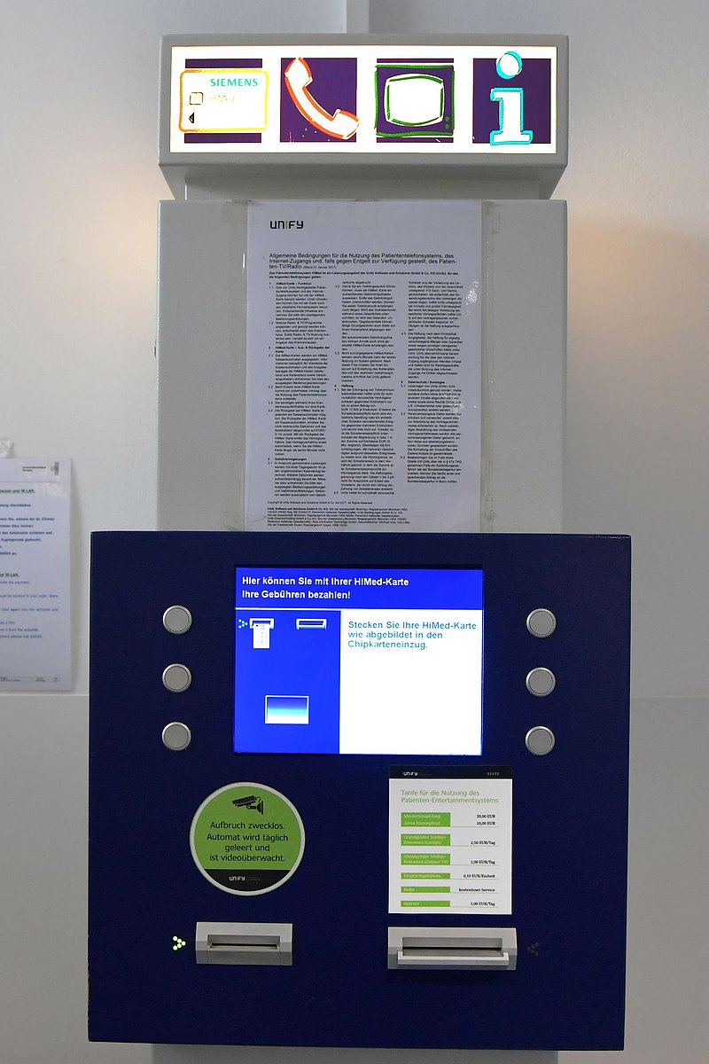 ... am Bett über das Patientencockpit. Die dafür benötigte Karte erhalten Sie am Automaten im EG (bei der stationären Aufnahme, vor Station 100). Sie müssen mindestens 20,00 € aufladen; 10,00 € davon sind Pfand.