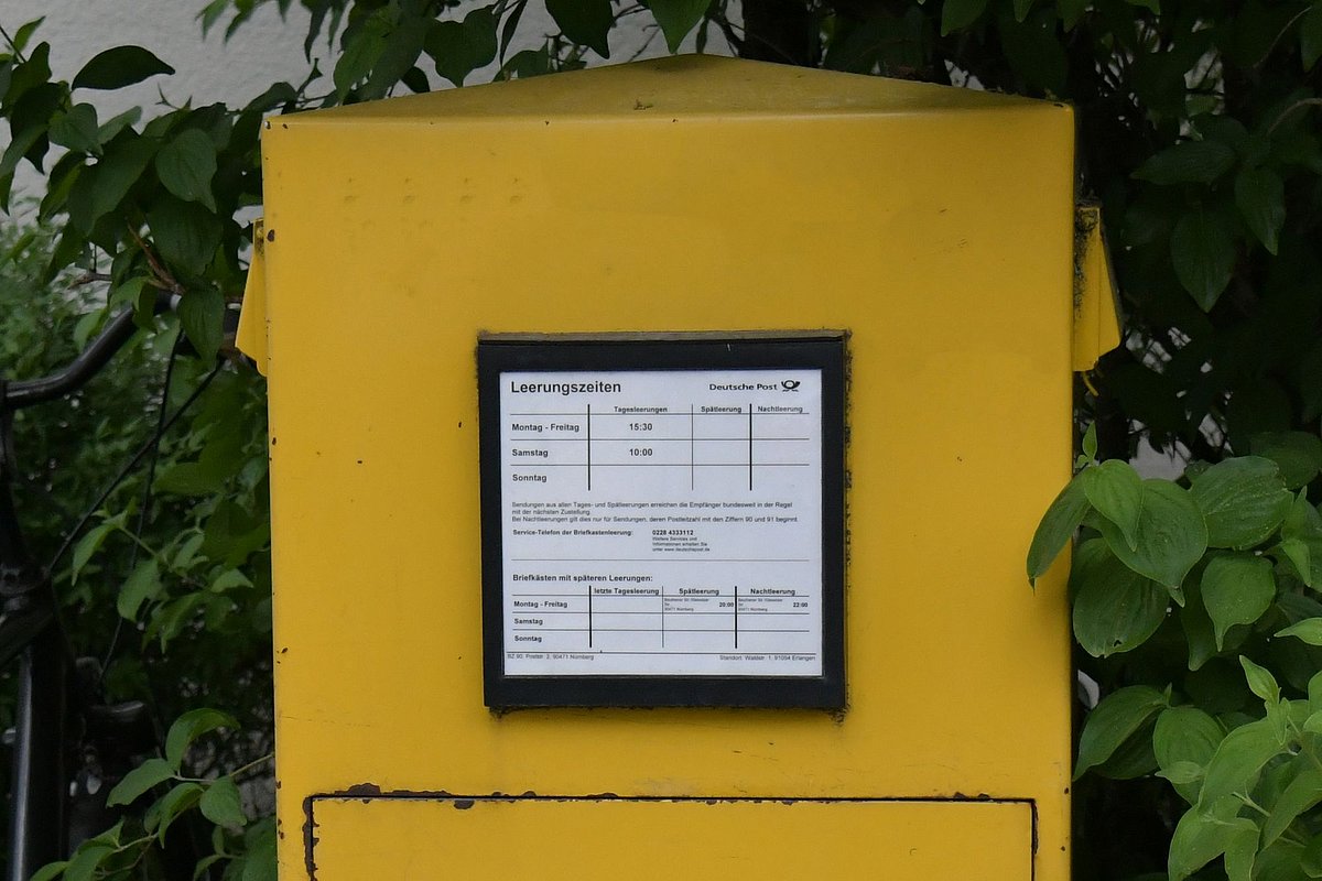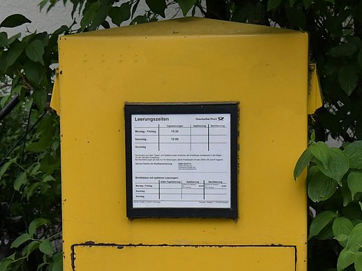 Leerungszeiten: Mo. – Fr. 15.30 Uhr, Sa. 10.00 Uhr